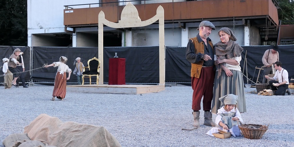 Es waren auf dem weiten Platz des Kieswerks Kopf vor einmaliger Kulisse vier schlichte, Häuser symbolisierende Holzgestelle platziert, in denen in einzelnen Szenen das Leben und Leiden der Rheintaler Bevölkerung zu Zeiten, in denen der Rhein noch nicht gezähmt war, dargestellt wurden. Von insgesamt 19 Schauspielerinnen und Schauspielern aus den Amateur-Theatergruppen der an den heutigen Alten Rhein anrainenden Gemeinden.