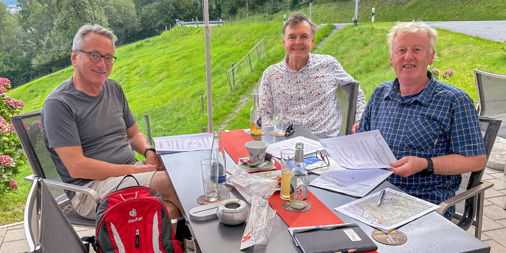 Mit Bernhard Litscher, dem Verantwortlichen für die Rheintaler Wanderwege, hatte die Gruppe den wohl besten Kenner des Rheintaler Höhenweges dabei. Er gab wertvolle Tipps zu geeigneten Standorten für die Informationstafeln. Mit dabei waren auch Jörg Krummenacher, Beauftragter für die Erstellung der Texte, sowie Toni Loher und Reinhard Frei vom Vereinsvorstand.