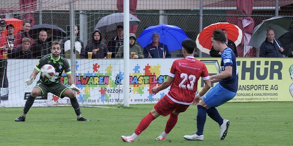 Die erste Halbzeit endete mit einem torlosen Unentschieden. Aber es war ein 0:0 von der besseren Sorte. Attraktiv für die Zuschauer, die im Montlinger Dauerregen zwei aktiv und immer wieder offensiv nach vorne spielende Teams sahen. Ein Spiel, das auch von Emotionen lebte. So verloren die Rorschacher in der zweiten Halbzeit, nachdem sie in Rückstand geraten waren, ein ums andere Mal leicht die Nerven. Der Schiedsrichter brachte den Match aber problemlos mit Fingerspitzengefühl und ohne gelbe Karten durch diese Phase.