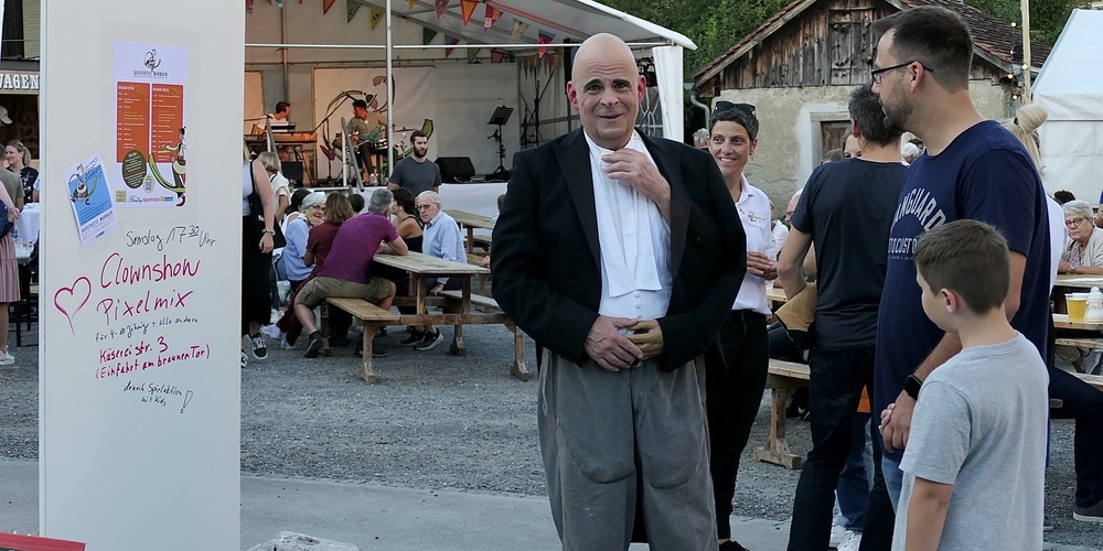 Und sie freuten sich auch über die stupenden Musiker von «Franks Jazzgerät», die im Kirchenchor-Gewölbekeller aufspielten, während auf der Hauptbühne die Domino Dancers, Jukebrass und die ZZ Mountain Band ihre Auftritte hatten. Und Feuerschlucker Tom Veith am späten Abend seine «brandheisse» Vorführung zeigte. Dazwischen drin machte Clown Picc seine Clownshow Pixelmix.