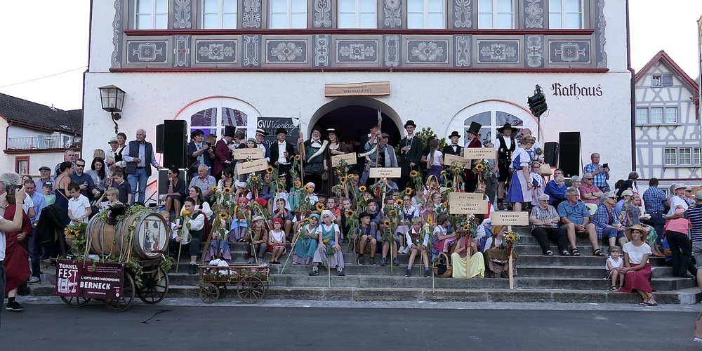 Ein prächtiges, ein erstaunliches, ja ein richtiggehend erhabenes Bild ergab sich für den staunenden Betrachter, wenn er auf die versammelte Menge am Bernecker Rathausplatz blickte. So wie der OK-Präsident des Torkelfestes Oliver Morandi bei seiner kurzen Ansprache: «Ich bin echt ergriffen. Was für eine Kulisse! Einfach wunderbar.»