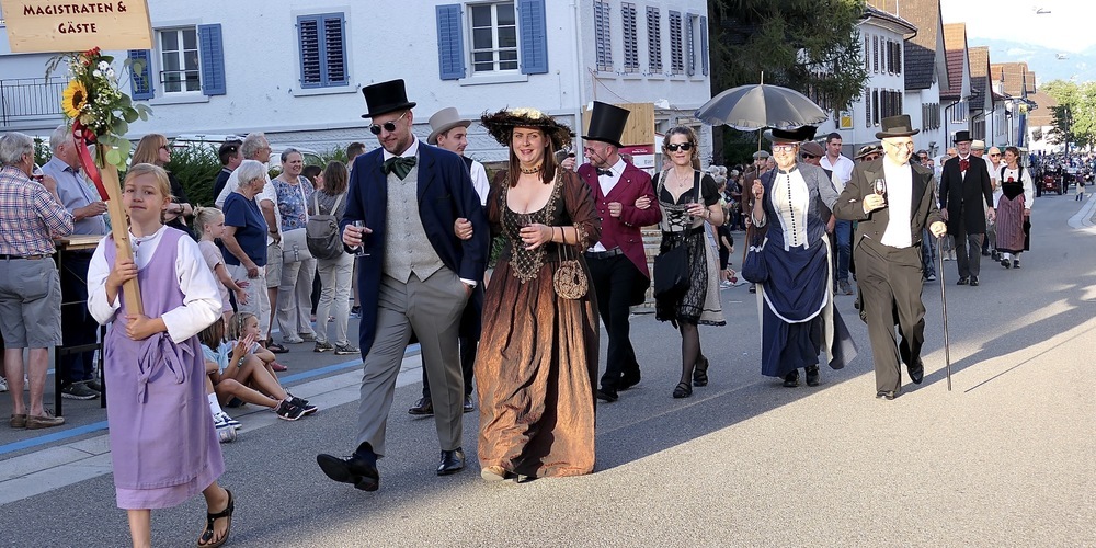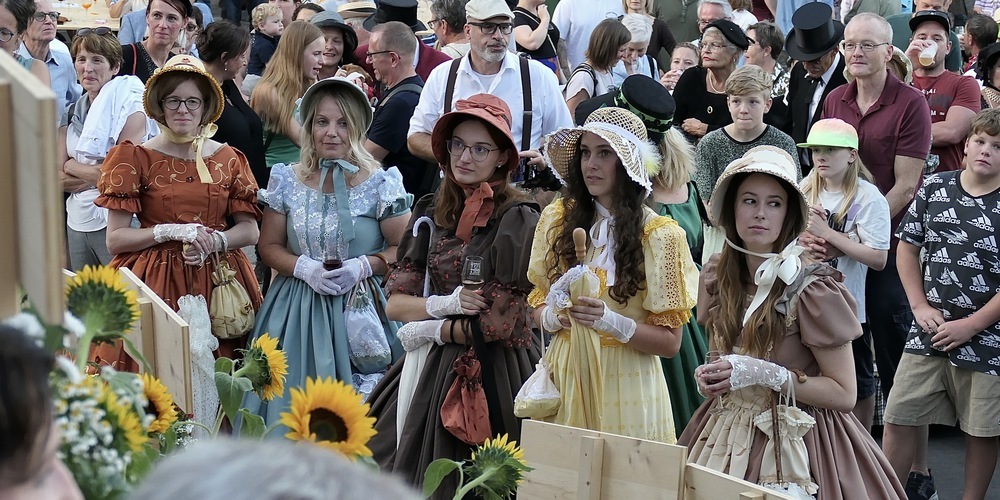 Richtig fesch im alten Gewand hielt auch Gemeindepräsidentin Shaleen Mastroberardino eine kurze Ansprache. Und erwähnte natürlich, dass Berneck das grösste Weindorf im Kanton St.Gallen ist. «Das Torkelfest, das ja alle zwei Jahre stattfindet, musste 2021 wegen Corona ausfallen, dafür wird das heurige Fest doppelt so gut!»