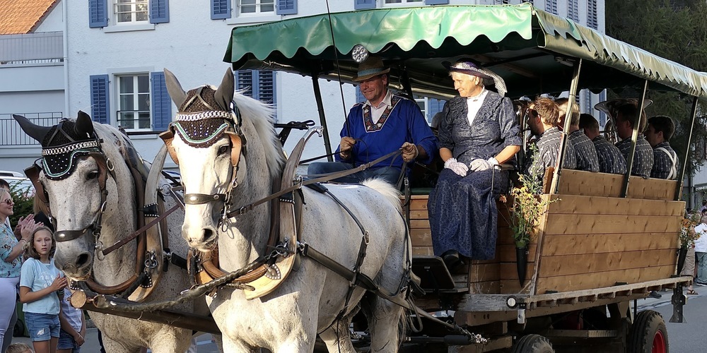Eröffnet wurde dieses Torkelfest mit dem festlichen nostalgischen Umzug. Angeführt von den beiden Bernecker «Nachtwächtern» Felix Indermaur und Paul Koller wandelte der feierliche Tross von den Mobilwerken über die Tramstrasse und die Neugass bis zum Rathausplatz. Wo all die Pferdefuhrwerke und historischen Oldtimer, all die Musiker und Guggen zusammenkamen.