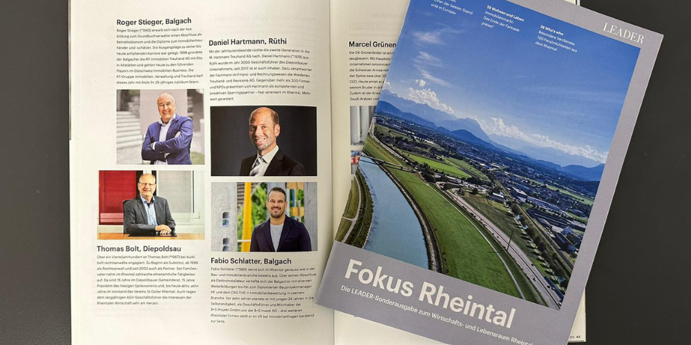 Zum ersten Mal hat das Ostschweizer Unternehmermagazin LEADER prominente Köpfe des Rheintals mit einem eigenen «who's who Rheintal» geadelt und darin rund hundert Exponenten aus Wirtschaft, Politik, Kultur und Gastronomie einer breiten Leserschaft vorgestellt. Damit sollte all jenen Menschen eine Plattform geschaffen werden, die – oft auch im Verborgenen – Grossartiges für die Region Rheintal und die Ostschweiz leisten.
