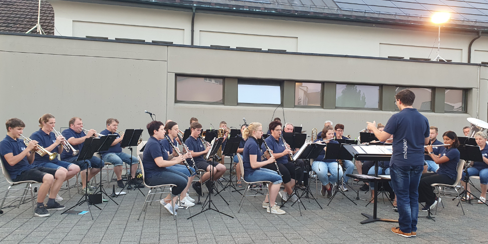 Auch bei den weiteren Musikstücken wie z.B. «Die tollkühnen Männer in ihren fliegenden Kisten», «Crazy Train» oder «Musik ist Trumpf» klatschten viele Zuhörer mit oder wippten im Takt der vorgetragenen Titel. Besonderen Applaus gab es beim Stück «Lasset uns das Leben geniessen» zum wohlklingenden Gesang von Jacqueline und André. Wie im Fluge verging bei diesen schönen Klängen die Zeit bis zum Dunkelwerden.