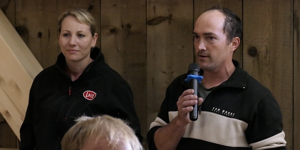 Bruno und Ramona Sonderegger stellten ihren Kuhstall vor. Sie halten derzeit etwa sechzig Kühe, wovon 52 Stück im neuen Stall untergebracht sind. Die Familie ist seit 2010 Pächterin von Flächen der Ortsgemeinde St.Margrethen und konnte 2018 den bäuerlichen Betrieb an der Adresse Vorburg 42 käuflich erwerben, wo jetzt der neue Stall errichtet wurden. Was ein anspruchsvolles Projekt war.