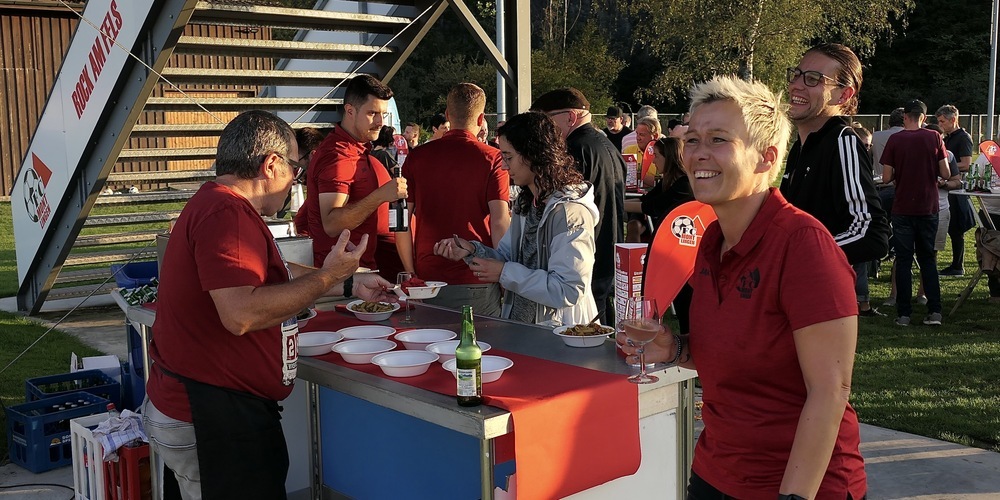 Die 95 Teilnehmer am Apéro konnten sich natürlich am «hauseigenen» Sonnenbräu-Bier, an Wein und alkoholfreien Getränken sowie an hervorragenden Wurstnudeln und Desserts delektieren ehe sie sich den leider unglücklich ausgegangenen Match der Kolbensteiner gegen den FC Abtwil-Engelburg ansehen konnten.