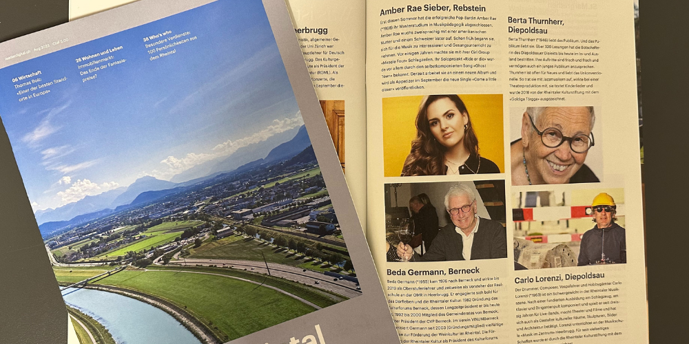 Zum ersten Mal hat das Ostschweizer Unternehmermagazin LEADER prominente Köpfe des Rheintals mit einem eigenen «who's who Rheintal» geadelt und darin rund hundert Exponenten aus Wirtschaft, Politik, Kultur und Gastronomie einer breiten Leserschaft vorgestellt. Damit sollte all jenen Menschen eine Plattform geschaffen werden, die – oft auch im Verborgenen – Grossartiges für die Region Rheintal und die Ostschweiz leisten.
