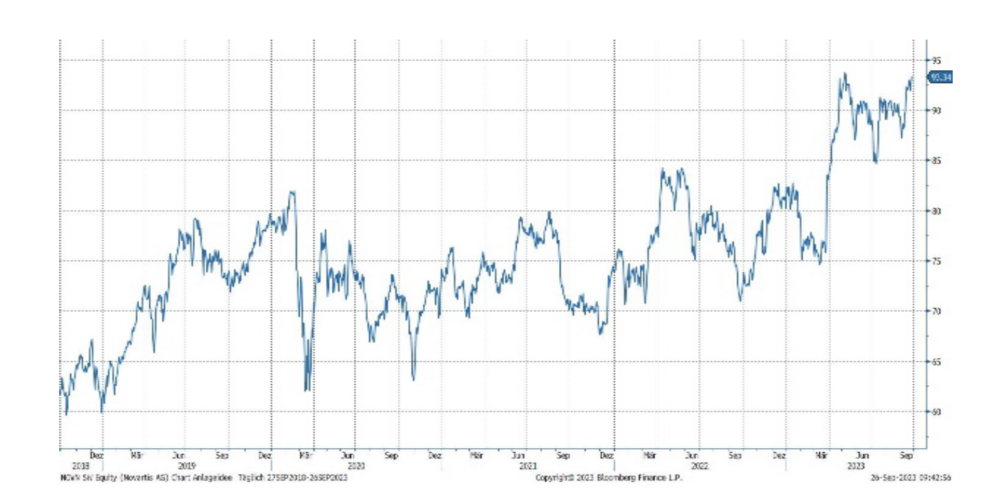 Kurs am 28.09.2023 CHF 93.71; 52 Wo Hoch/Tief CHF 93.99/73.74; Valor 1.200.526; Geschätztes KGV 2024: 14.86x; Dividendenrendite ca. 3.48%.