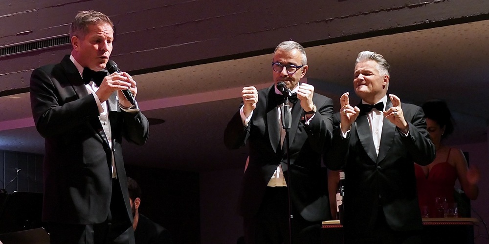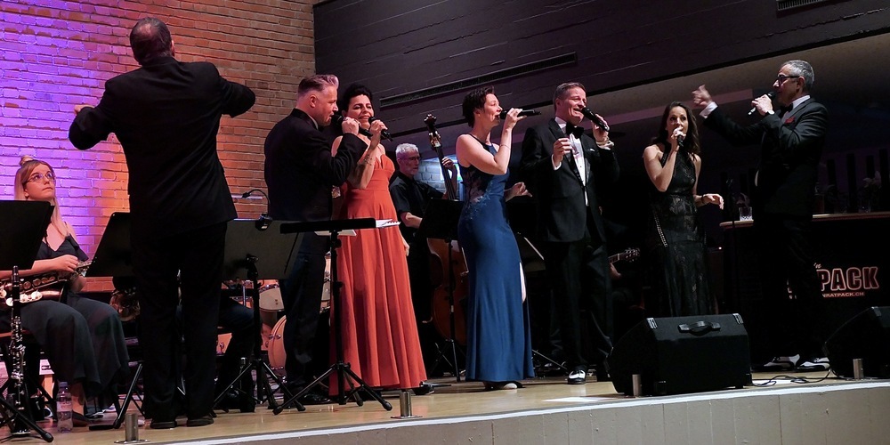 Diese Tradition lassen die drei Sänger vom «Mountain Rat Pack» wieder aufleben. Hampa Rest vulgo Dean Martin, André Renggli alias Sammy Davis jun. und Jörg Guyan als Frank Sinatra blödelten sich am Freitag- und Samstagabend gemeinsam mit der bestens aufgelegten SSC Big Band jeweils durch eine Swingshow im Optik-Huus in Heerbrugg. Geniales Geblödel mit genialen Stimmen.