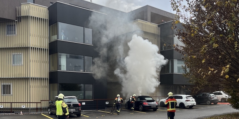 Am Samstag hat um 14 Uhr auf der Feldstrasse ein Auto gebrannt. Die Fahrerin konnte das Auto rechtzeitig verlassen und blieb unverletzt.