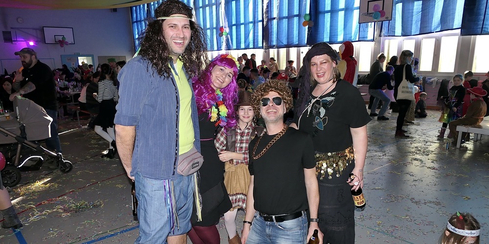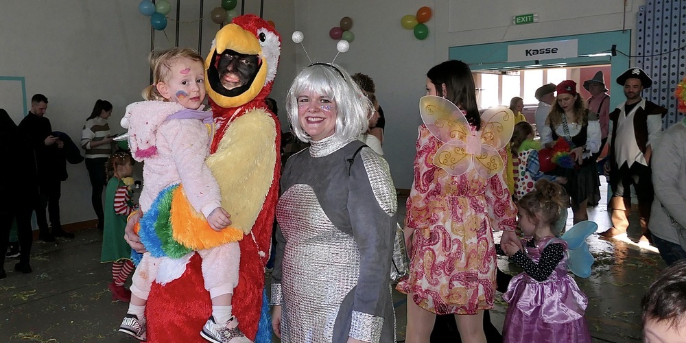 Auch die mitgekommenen Papis und Mamis waren meist phantasievoll kostümiert. Als Sträfling, Clowns, Papagei oder ganz schlicht im Jeansanzug mit Hut als Cowgirl. Und feierten, tobten und tanzten mit ihren Kindern zur Musik von Alpen-DJ Heiner.
