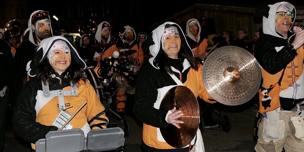 So harrten viele hundert Menschen der trötenden und trommelnden Musikkaskaden, die schon bald über sie hereinbrechen wurden. Denn die Guggen enttäuschten nicht. Und faszinierten nicht nur mit ihren schrägen Tönen, sondern auch mit ihren originellen und einfallsreichen Kostümen und Verkleidungen.