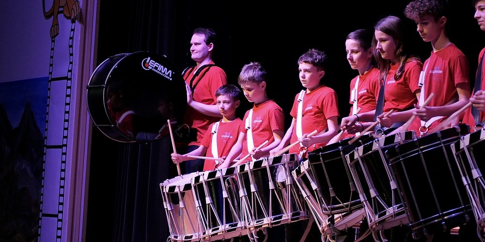 Auch die Jungtambouren Kriessern waren dabei und wechselten sich mit der Jungmusik im Auftritt ab. Die Jungtrommler mit Raphael Hutter am Taktstock liessen ihre Schlagstöcke ganz gehörig auf die Trommeln niedergehen. Sogar im Dunkeln, als sie Sticks mit roter oder blauer LED-Beleuchtung verwendeten. Was einen sensationellen optischen Effekt erzeugte.