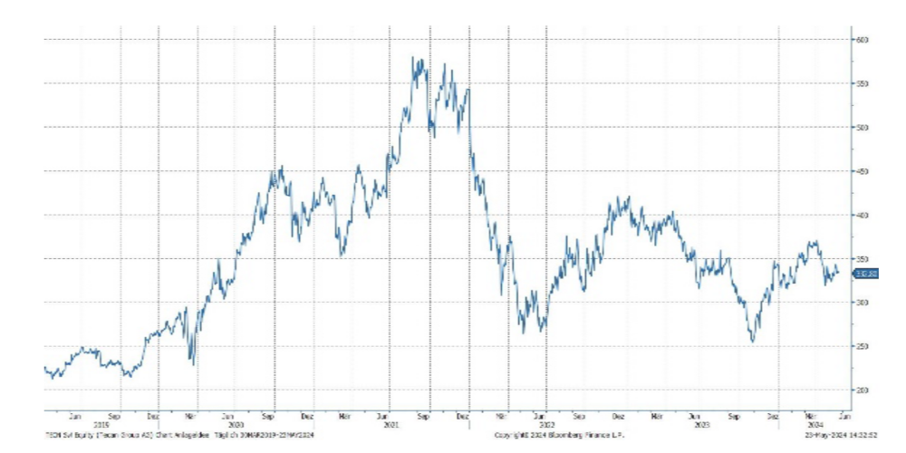 Der Umsatz sank um 6.1% auf CHF 1.07 Mrd. Das Investitionsverhalten der Kunden dürfte im laufenden Jahr konservativ bleiben. Techan ist aber gut positioniert, um Chancen in verschiedenen Regionen und Wachstumsmarktsegmenten zu nutzen. Konkret erwartet das Management für das laufende Jahr eine Zunahme des ausgewiesenen Umsatzes im tiefen einstelligen Prozentbereich in Lokalwährungen. Das Jahr 2024 wird als Übergangs-jahr angesehen. Ab 2025 rechnet das Management wieder mit einer anziehenden Dynamik.»