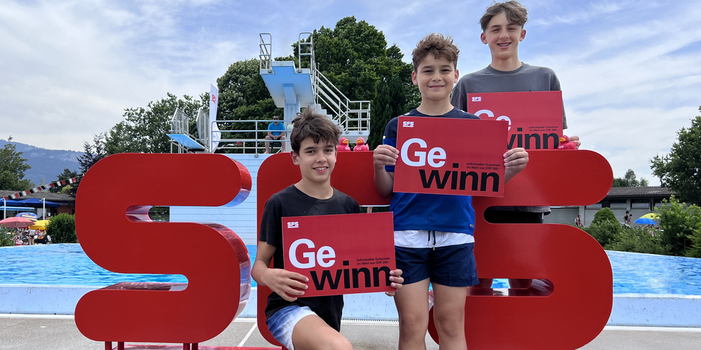 Und genau das will auch die SFS mit ihrem Auftritt im Freibad Aegeten erreichen: Direkt am Eingang steht ein grosses Banner, damit die zahlreich eintrudelnden Besucher aufmerksam werden.