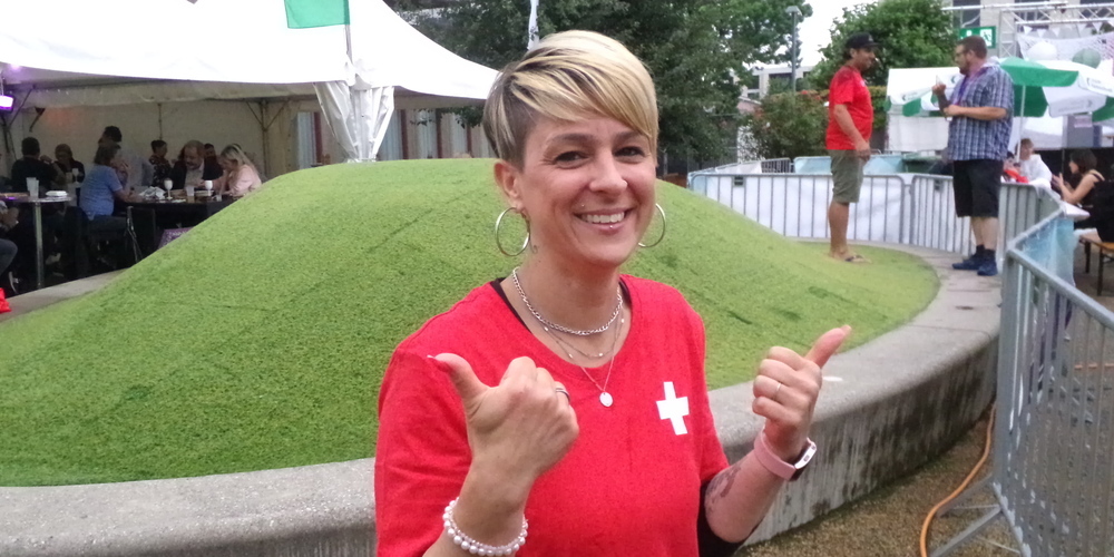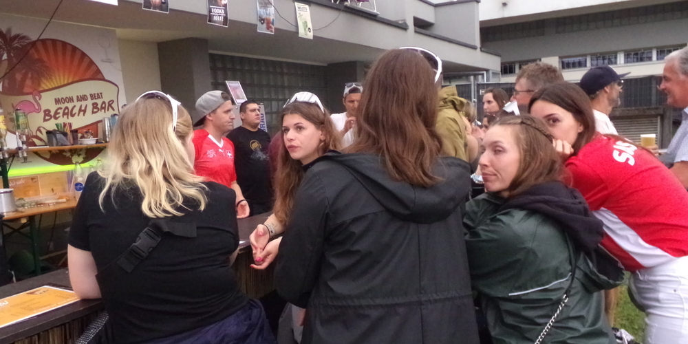 So musste die Solid-Rock-Formation «Novoid», die pünktlich um halb acht ihren Auftritt begann, sozusagen gegen die Verlängerung des Fussballmatches ankämpfen. Denn während vor der Hauptbühne die Zuschauer nur dünn gesät waren, versammelten sich rund um die eingeschalteten TV-Geräte, wie etwa vor der Nebenbühne dichte Trauben von Zuschauern, um der Nati die Daumen zu drücken.