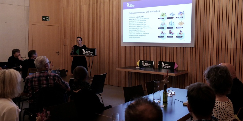 Melanie Brunner stellte den Inhalt des Projekts vor. Ausgegangen von der Idee, dass Wein erlebt werden soll, wird es auf den Weinwanderwegen ein Rollenspiel geben. Ein interaktives Erlebnis. «Werde Winzer für einen Tag» soll die Verbraucher auf vielen verschiedenen Stationen mit der Arbeit, der Produktion und Naturräumen der Winzer bekannt machen.