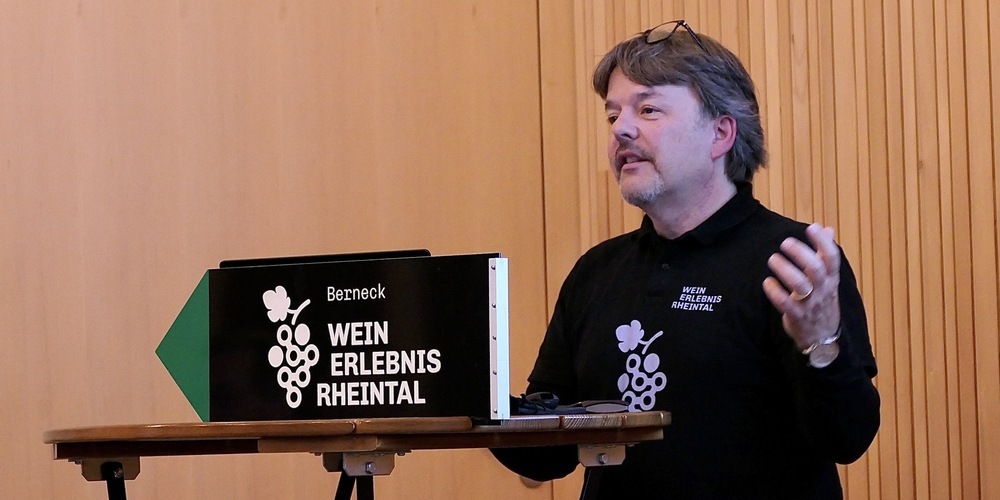 Christoph Schmid von Tobias wein gut referierte über die Ausgangslage. In Berneck existiert seit 1980 ein Weinwanderweg mit Informationstafeln. Dieser wurde Anfang 2000 unter der Leitung von Felix Indermaur erneuert. Ursprünglich war eine weitere Erneuerung der in die Jahre gekommenen Wegweiser und Info-Tafeln geplant. «Doch bald wurde realisiert, dass ein Mehrwert geschaffen werden muss. Nicht nur Tafeln, sondern ein Weinerlebnis mit allen Sinnen.»