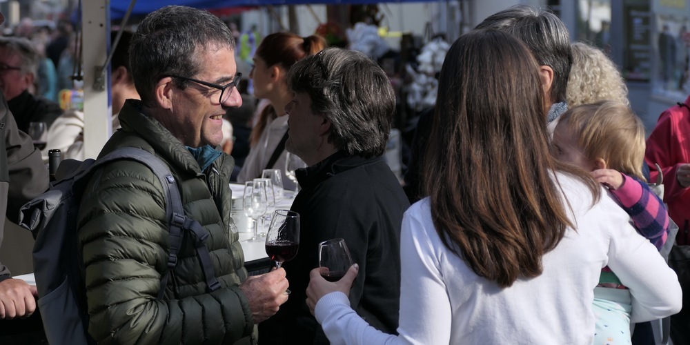 So servierten direkt in den Rathausarkaden die Herren vom Feuerwehrverein heissen Fleischkäse mit Kartoffelsalat. Wie es denn so läuft, wollten wir von Markus Forrer von der Feuerwehr wissen?. «Über Mittag hatten wir bummvoll und mussten sogar schon Nachschub holen.» Direkt gegenüber gab es im Restaurant Drei Könige im Freien Käsknöpfli mit Apfelmus im Angebot. Dazu kamen noch die kulinarischen Aussteller.