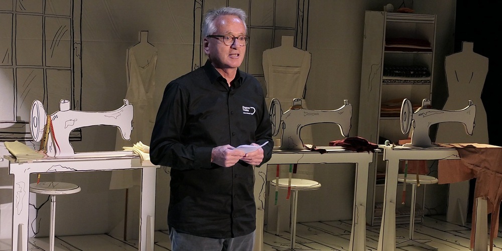 René Wuffli betonte in seinen einführenden Worten zum Theaterstück, dass es seit den 44 Jahren des Bestehens des Diogenestheaters das erste Mal der Fall sei, dass extra ein Theaterstück in Auftrag gegeben worden sei. Der bekannte Dramaturg Paul Steinmann hat dann «Bis dä fade riisst» frei nach dem Buch «Schürzennäherinnen» von Jolanda Spirig geschrieben. «Endlich habe ich mich nicht versprochen, denn bei den bisherigen Vorführungen habe ich immer "Schürzenjägerinnen" gesagt», scherzte Wuffli.