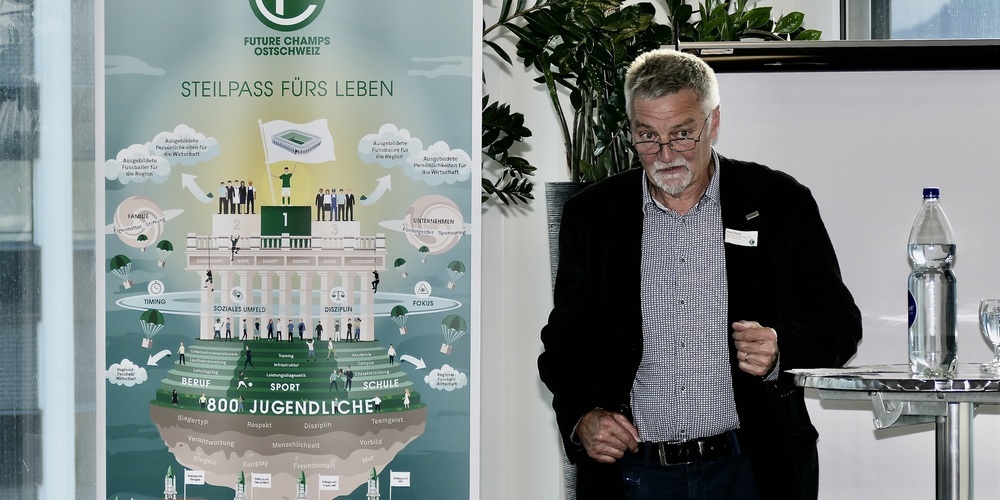 Dazu stellte Matthias Hüppi als Präsident des FC St. Gallen die Philosophie des Vereins und dessen Nachwuchsarbeit vor: «Der durchgehende Auftritt der Spieler von ganz oben bis zu den jüngsten Nachwuchsspielern soll einheitlich sein. Mutig auftreten, mutig spielen, mit Freude und Spass, aber geprägt von Anstand und Respekt, von klarer Haltung und konsequenten Werten.» Hüppi verwies auf jene jungen St.Galler Spieler wie Fazlii, Stäubli, Hefti und Kräuchi, die aus dem FCO kommend den Sprung in das Profiteam geschafft haben, was eiserne Disziplin und Fokussierung auf das grosse Ziel verlangt. «Dennoch ist uns klar, dass nur einem von hundert Nachwuchsspielern der Sprung in die erste Mannschaft gelingt.»