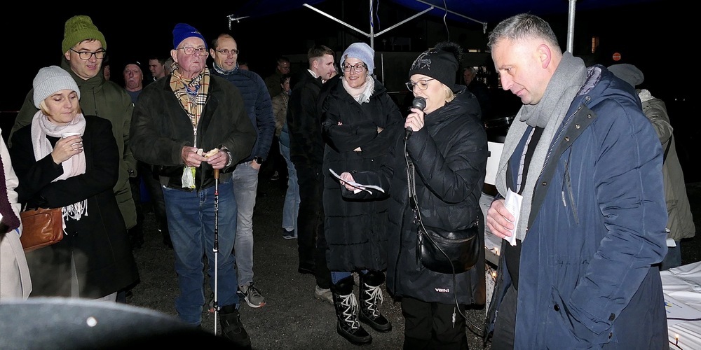 Und dann war es soweit. Mit einem Countdown wurde von den versammelten Lichterfreunden die letzten Sekunden heruntergezählt und dann der Schalter umgelegt. Und es kann bestätigt werden: Es ist wunderschön geworden. Der mächtige grosse Weihnachtsbaum erstrahlte erstmals mit hunderten, ja vermutlich tausenden Lichtern und verbreitete einen adventlichen Glanz. Und wird diesen auch in den nächsten Wochen jeden Abend und jede Nacht verbreiten. Wie ein Licht in dunkler Nacht…