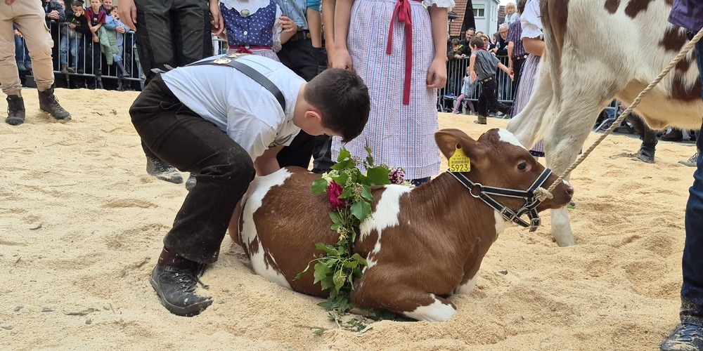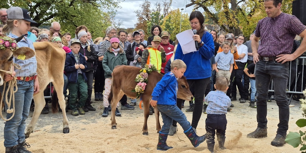 Für den grössten Jöö-Effekt durften morgens die Kinder mit ihren Kälbern sorgen. Manche Teilnehmer waren so klein, dass selbst ihr Kalb sie überragte. Jedes Kind stellte sein Kälbchen zur Schau und sagte einen Spruch auf, um die Zuschauer zu beeindrucken und wohl manches Herz zum Schmelzen zu bringen. Wer kann es den Zuschauern verübeln? Sowohl Kinder, wie auch Kälbchen waren aufwändig geschmückt.