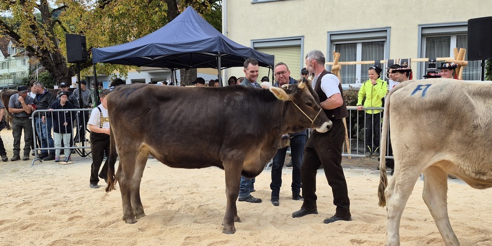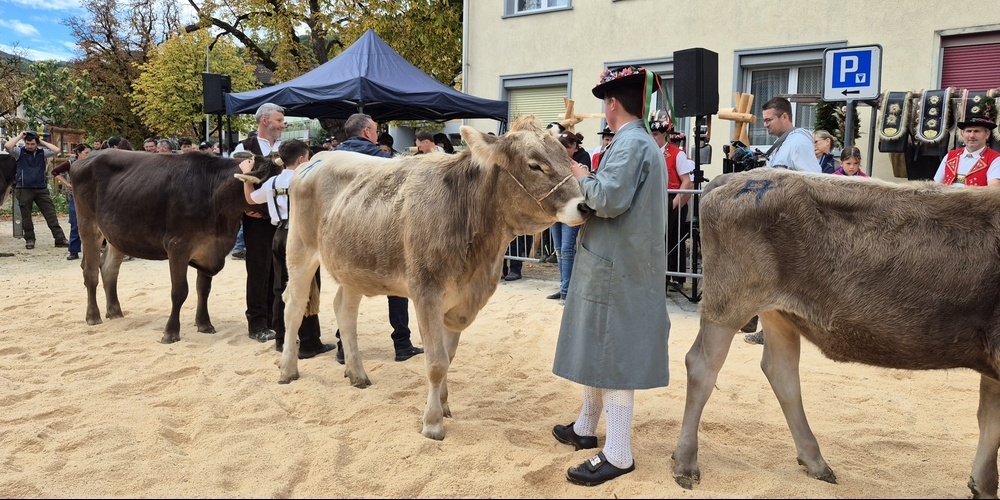 Bereits frühmorgens, um neun Uhr, ging es mit der Auffuhr los. Die Teilnehmer brachten ihr bestes Vieh auf den Breite-Parkplatz Altstätten, um sie dort dem Publikum zu präsentieren. Der Eichberger Christian Freund kam gar den ganzen Weg zu Fuss.