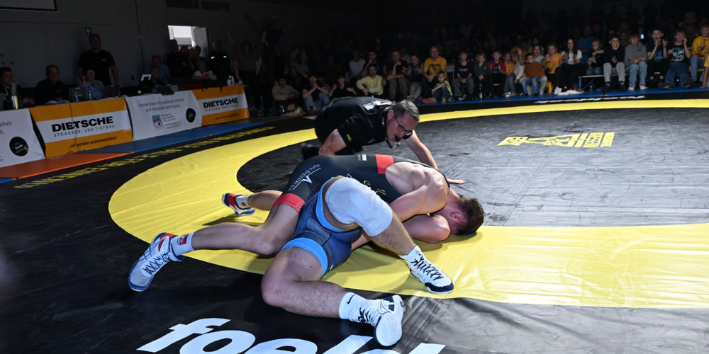 Angefeuert vom Publikum legte Dominik Laritz (70 kg Freistil) mutig gegen den favorisierten Nino Leutert los. Zwischenzeitlich ging er sogar in Führung, musste sich letztlich jedoch mit 7:12 geschlagen geben – ein Achtungserfolg, der die Euphorie in der Halle kaum bremste.