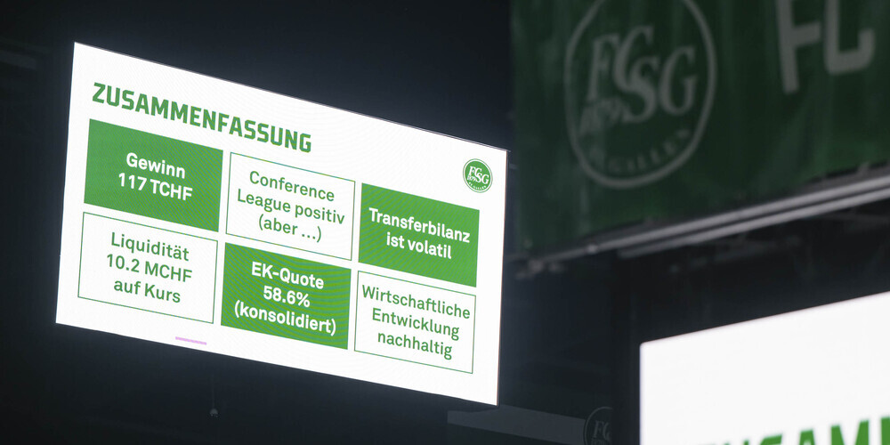 Auf der Leinwand lief eine emotionale Präsentation mit Bildern, die unvergessliche Momente der vergangenen Saison festhielt – darunter auch die Auftritte in der UEFA Conference League, welche den Klub nach elf Jahren Abwesenheit wieder auf die internationale Bühne brachten und den treuen Fans unvergessliche Europacup-Abende bescherten. Neben der 1. Mannschaft der Männer war auch die Frauenequipe unter den knapp 2000 Aktionären vertreten.