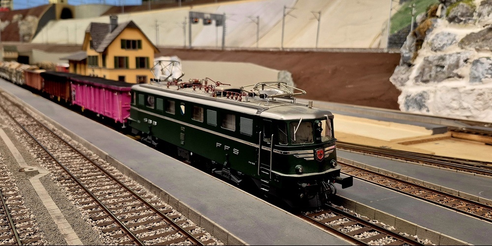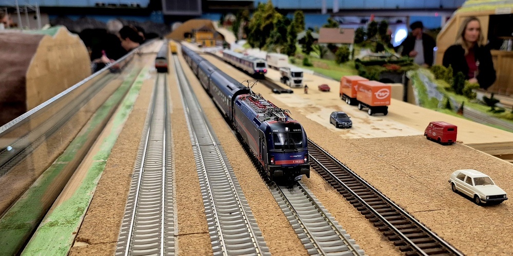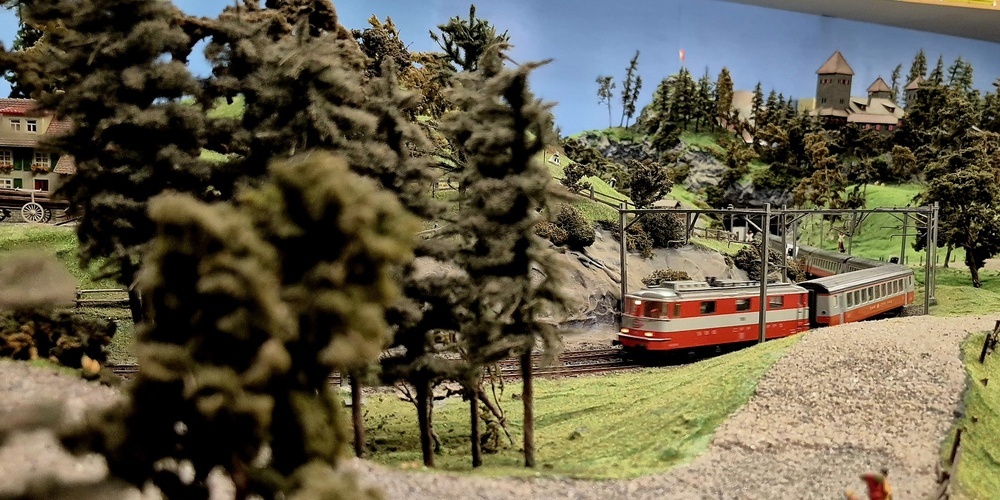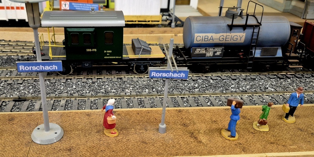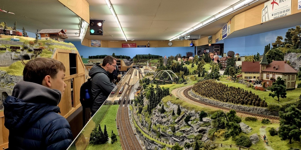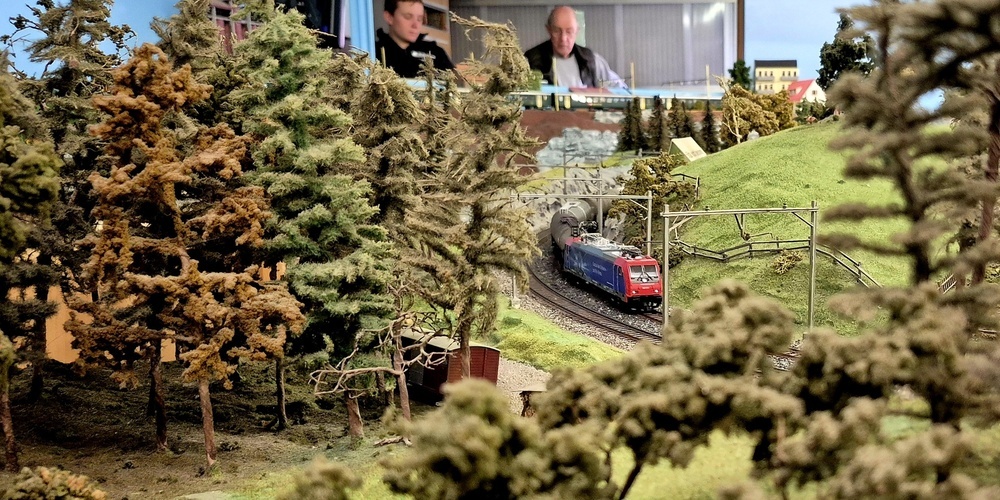 Das Clubhaus war um die Mittagszeit gerappelt voll und in den ohnehin schon engen Gängen gab es kaum ein Durchkommen mehr. Es schien, als hätte sich das ganze Rheintal versammelt, um die Kunstwerke des Clubs bestaunen zu können. Fünf Modelleisenbahnstrecken führten durch das ganze Clubhaus und überall waren Züge unterwegs.