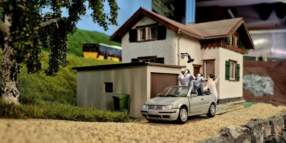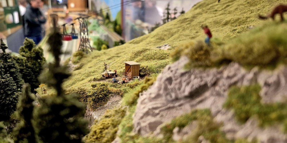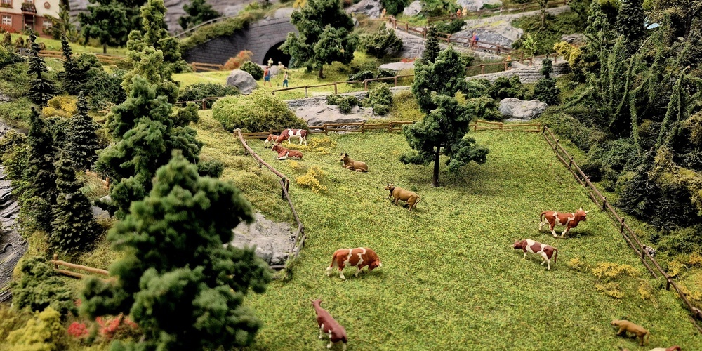 Andernorts konnten Bauern bei der Feldarbeit beobachtet werden. Ein besonderes Detail: Die Modelle der Bauern standen nicht einfach nur vor dem Feld, sondern hatten auch das richtige Werkzeug dabei, um das Feld tatsächlich bearbeiten zu können. Es sind die kleinen Dinge, die die Modelleisenbahnwelt vom REAK so besonders machen – und sie offenbaren sich nur denen, die sich auf diese Welt einlassen können und die tausenden Stunden Arbeit der Mitglieder zu schätzen wissen.