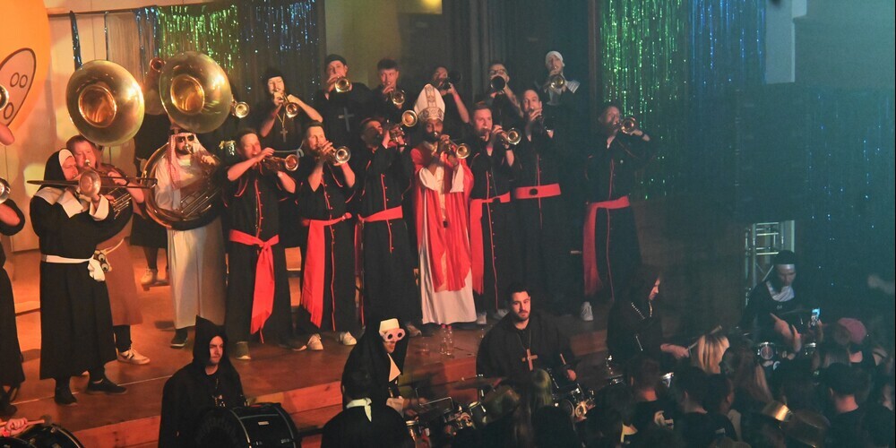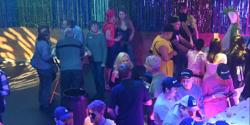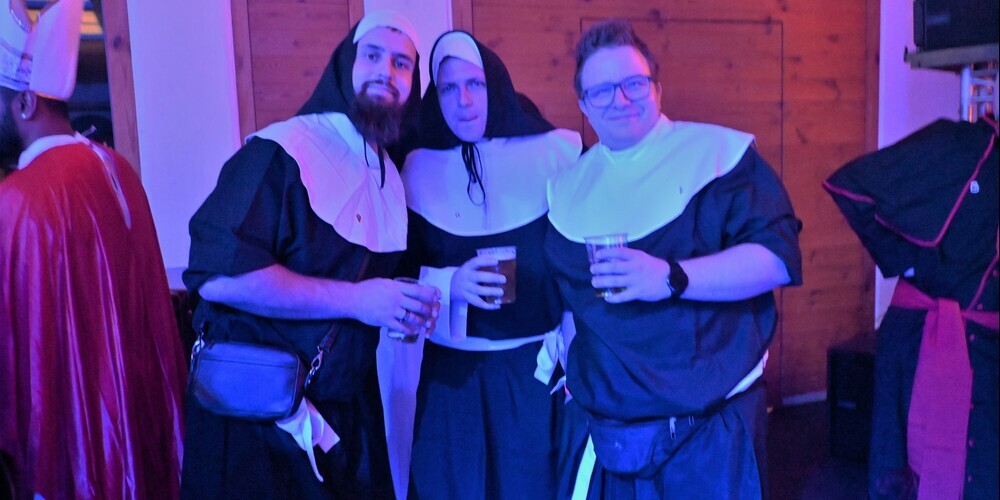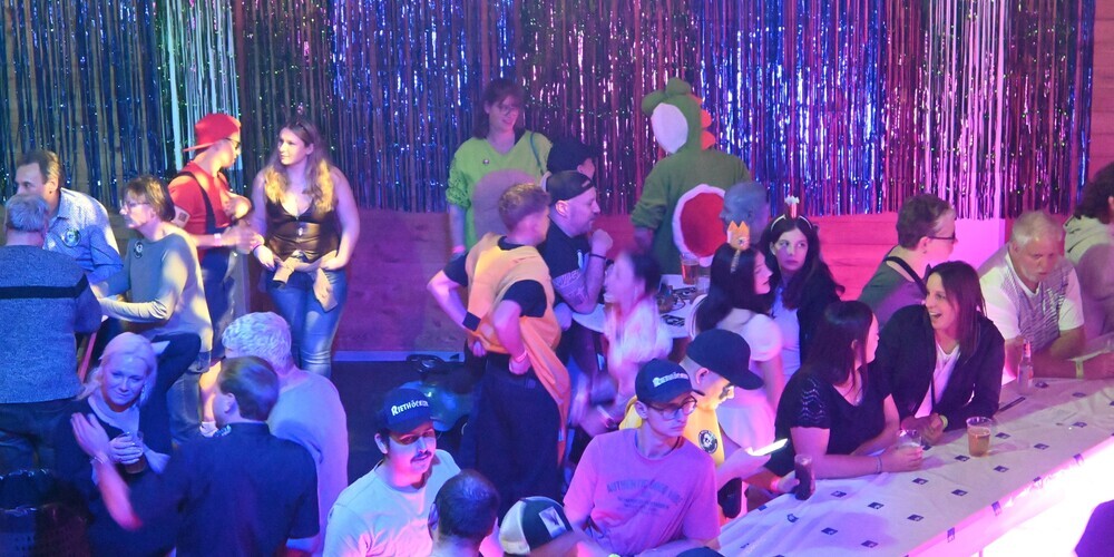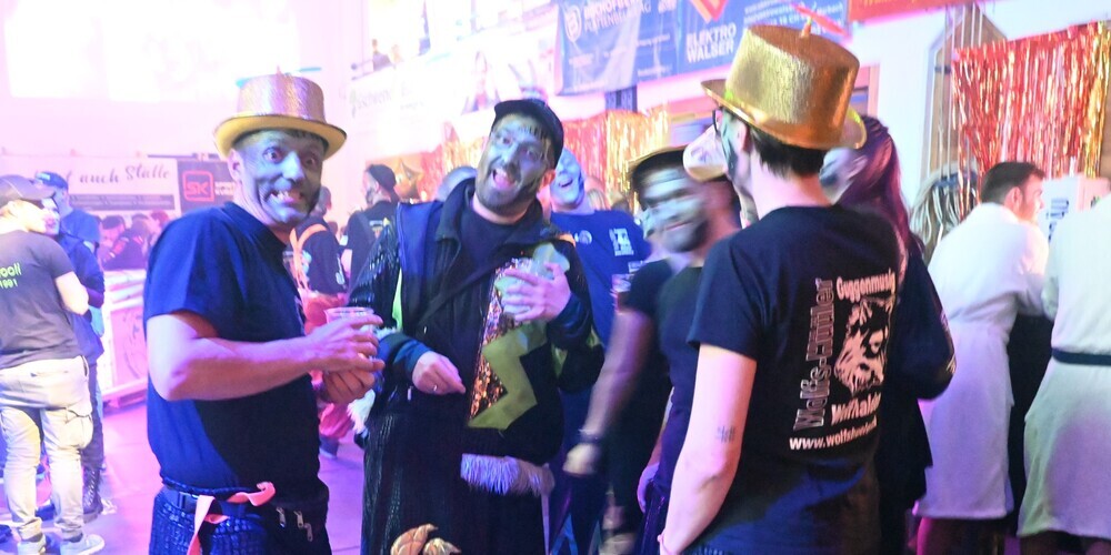 Nicht sehr viel mehr zu erkennen, als im Freien, war auch in der Halle. Zeitweise verschwanden die Fasnächtler in dichten Nebelschwaden. Während die Sicht trübeblieb, wurde die Halle immer voller, die Stimmung immer besser.