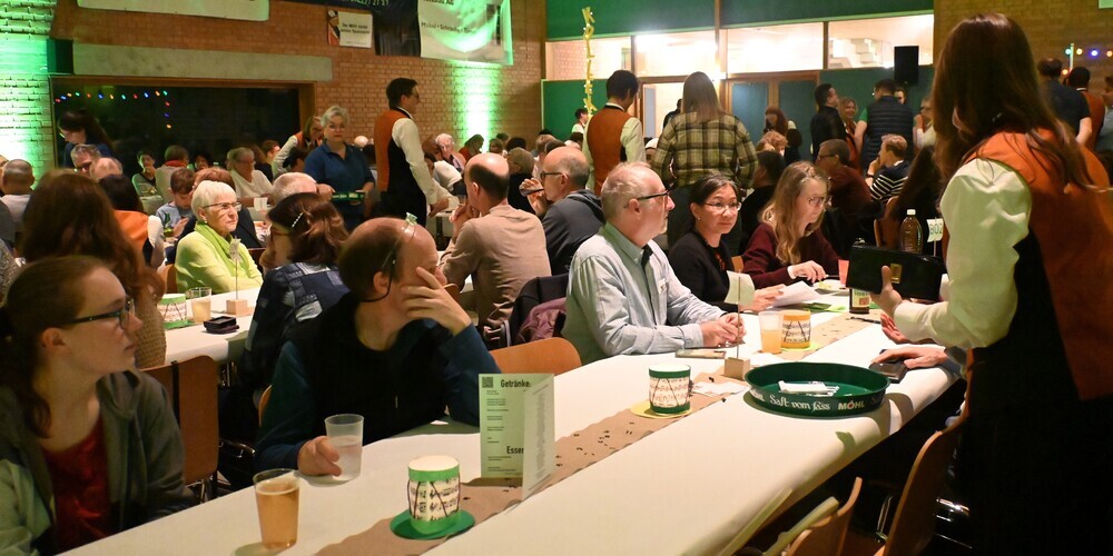 Nach der Türöffnung um 19 Uhr gab es zuerst den Znacht, serviert von Mitgliedern des Musikvereins Konkordia Au. Im Gegenzug führen die Heerbrugger Musikanten die Festwirtschaft, wenn die Auer ihr Jahreskonzert geben. Bereits kurz nachdem die Türen geöffnet wurden, gab es im Saal kaum mehr freie Plätze.