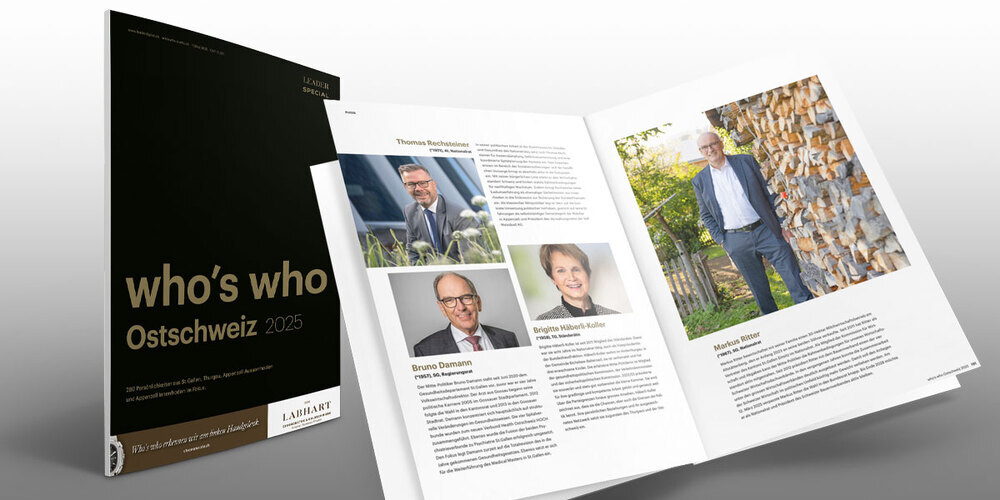 In der gerade erschienenen aktuellen dreizehnten Ausgabe des «who’s who der Ostschweiz» werden inzwischen 280 Persönlichkeiten aus den Kantonen St.Gallen, Thurgau und beiden Appenzell, die sich um die Ostschweiz besonders verdient gemacht haben, vorgestellt. Sie haben sich durch ihr Wirken wirtschaftlich, politisch, wissenschaftlich oder bildungstechnisch hervorgetan. Sämtliche bisher porträtierten Ostschweizerinnen und Ostschweizer finden Sie auf dem Onlineportal who-s-who.ch.