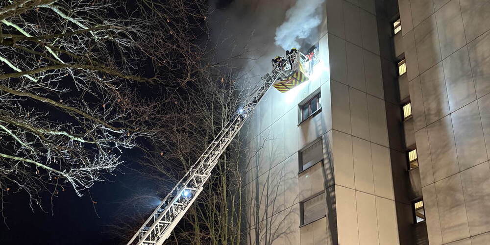 Dabei kam ein Hubretter zum Einsatz, mit dem die Feuerwehrangehörigen auf Höhe des 6. Stockes gefahren wurden, um den Vollbrand in der Wohnung zu bekämpfen.