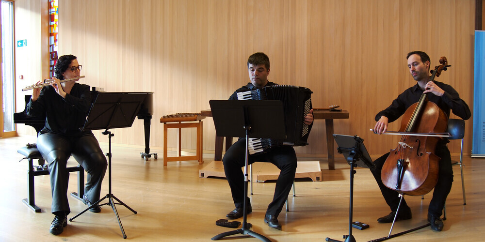 Einen kontrastierenden Akzent setzte anschliessend Fritz Kreislers Liebesfreud, dargeboten von Iryna Marozava am Hackbrett (Zymbal) und Aleksandra Popovic am Klavier. Das fein abgestimmte Zusammenspiel vermittelte Leichtigkeit und Eleganz.