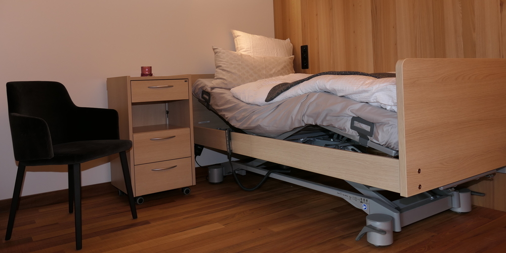 «Wir waren begeistert von der Anzahl der Interessenten, die am kürzlich stattgefundenen «Tag der offenen Tür» das Musterzimmer besichtigt haben», strahlt Gemeindepräsidentin Christa Köppel, die mit berechtigtem Stolz das gelungene Werk zeigt. «Und alle Besucher wurden von uns gebeten, Verbesserungsvorschläge zu machen. «Work in progress» sozusagen.» Denn letztlich soll das Musterzimmer dazu dienen, sozusagen einen Materialtest zu machen, die Abläufe zu optimieren, die allenfalls noch vorhandenen Mängel festzustellen. Wie etwa eine zu schwer zu bewegende Schiebetür oder ein in den Schrank eingebautes Schiebetablar für Kaffeemaschinen, das für Rollstuhlfahrer etwas zu hoch positioniert scheint.