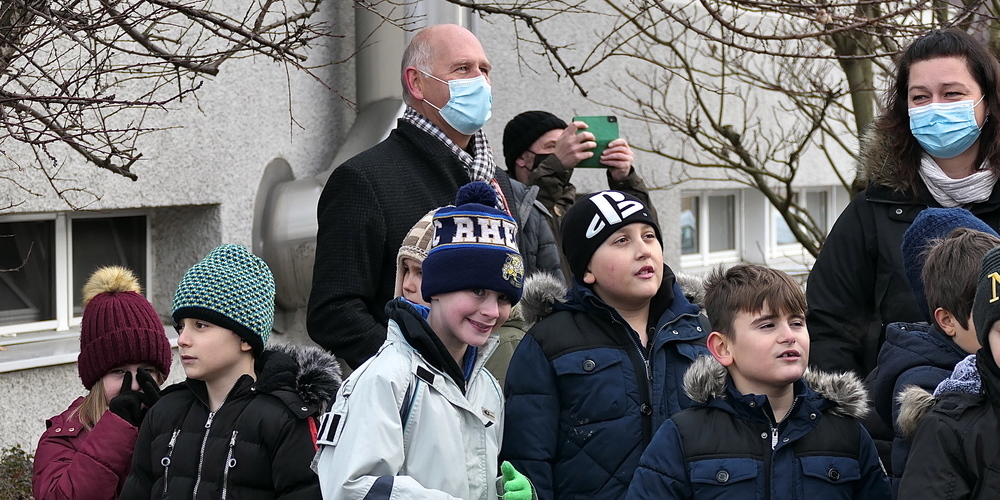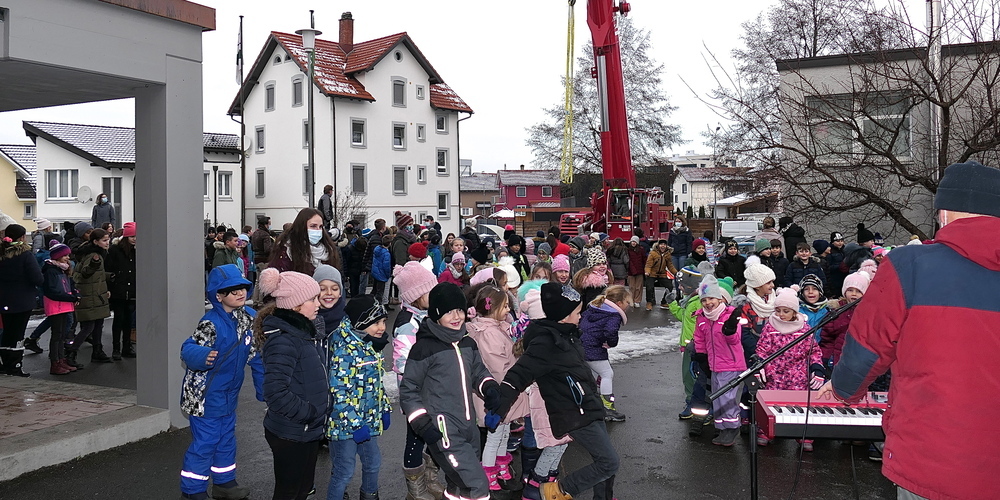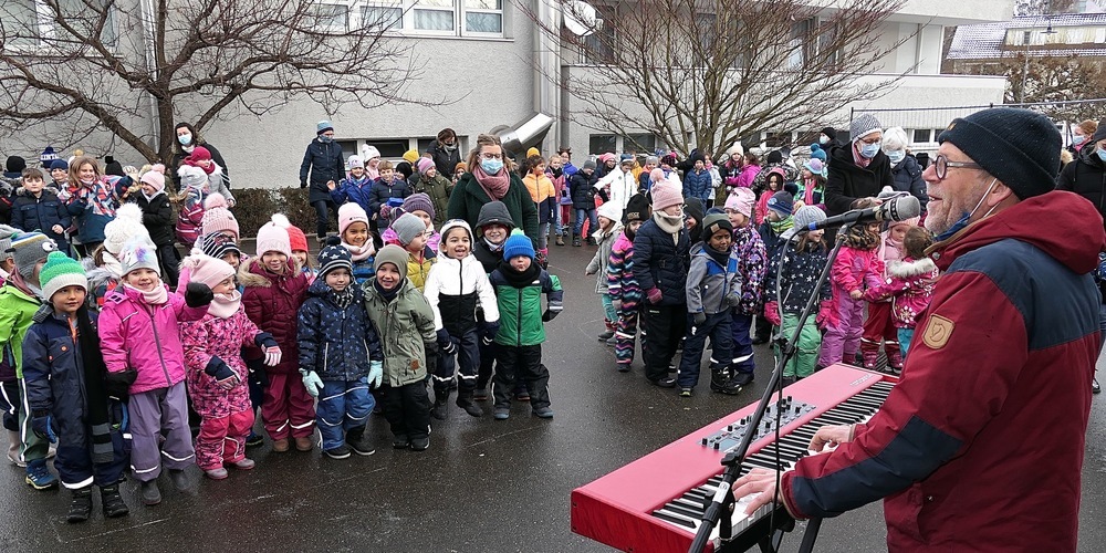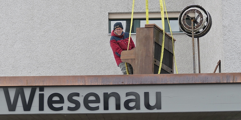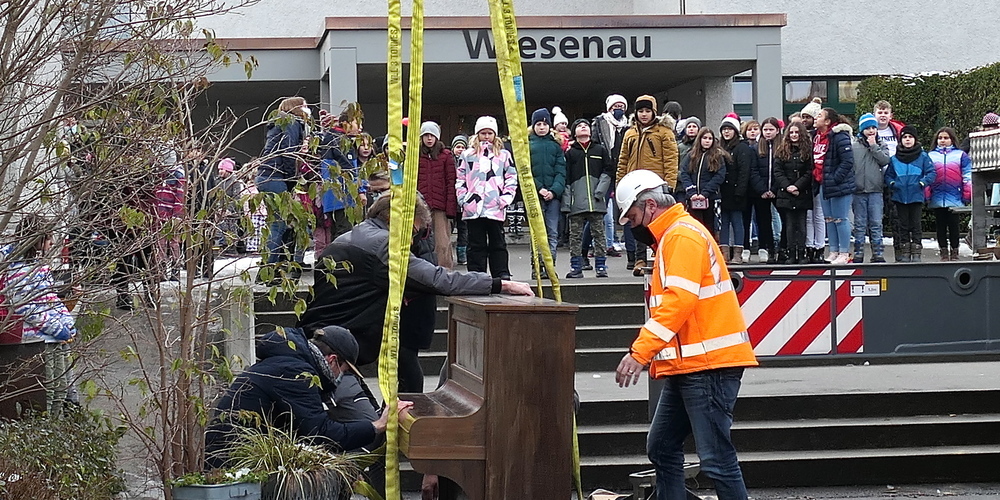 Die Schüler sind von dieser Idee begeistert. Wie sich schon deutlich beim «Kick-off» am Dienstagvormittag zeigte. Mit einem grossen Hebekran des St.Margrethner Unternehmens Gautschi wurde ein altes Schifferklavier über den Pausenplatz hinweg auf das Vordach des Eingangsbereichs gehoben. Und von Roman Rutishauser auch gleich bespielt.