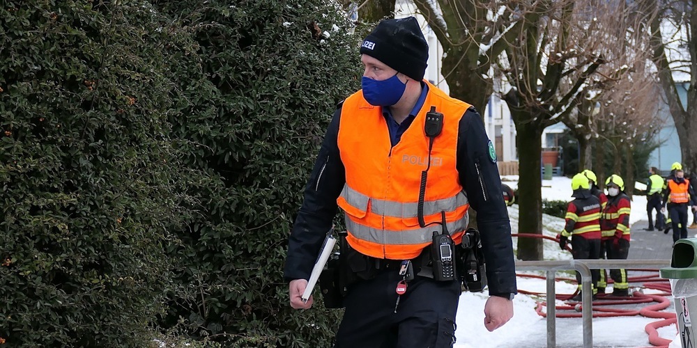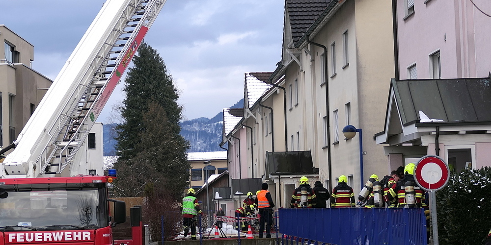 Um etwa 14.30 Uhr ging der Notruf ein. Eine Wohnung in einem Mehrfamilienwohnhaus sei in Brand. Es dauerte nur wenige Minuten, da waren die ersten Einsatzkräfte der Feuerwehr Mittelrheintal und Polizei bereits vor Ort und begannen mit den Löschtätigkeiten und Absicherungsmassnahmen.