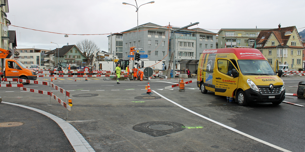 Die Strassenbauarbeiten im Dorfzentrum konnten wieder aufgenommen werden. Schneefall und Regen hatten den Baustart im neuen Jahr um zwei Wochen aufgeschoben. Bereits am Donnerstag ist die Verkehrsführung auf die neue Baustelle an der Steigstrasse umgestellt worden.