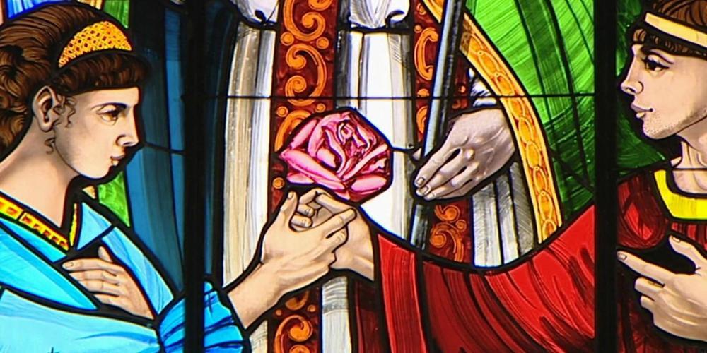 Der Heilige Valentinus war ein Märtyrer. Er wurde zum Tode verurteilt, weil er heimlich römische Soldaten, denen das Heiraten verboten war, traute. Während der Christenverfolgung im Römischen Reich hielt er Gottesdienste für Christen. Gemäß einer Legende heilte er während seiner Gefangenschaft die blinde Tochter seines Aufsehers und schrieb ihr vor seiner Hinrichtung zum Abschied einen Brief, der mit „Dein Valentin“ unterzeichnet war.