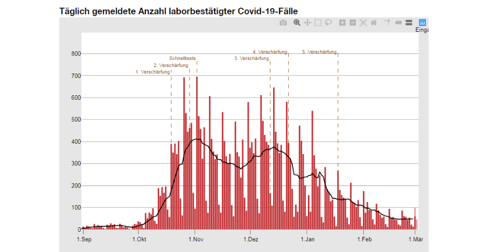 | Letzte Aktualisierung: 08.03.2021 07:58 Uhr | Anzahl kumuliert | Neu gemeldet |