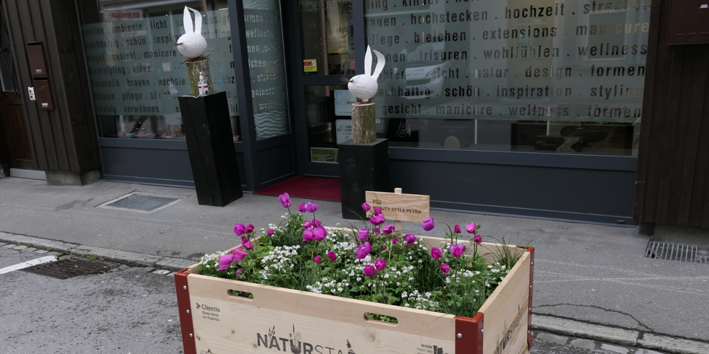 «Für die Planung haben wir etwa zwei Wochen Zeit benötigt», erzählten die beiden Blumenliebhaberinnen, «die Ausführung gelang mit Hilfe eines Schreiners innerhalb von sieben Tagen.» Und das Ergebnis lässt sich sehen. Schade nur, dass sich der Genuss des Sehens der zwölf Naturoasen und der 27 vor den Geschäftslokalen der Stadt aufgebauten «Palettengärten» wie auch der Genuss des Riechens des in der Luft liegenden Blütenduftes derzeit nicht mit dem Genuss eines Capuccinos oder eines Glases vom guten Rheintaler Wein verbinden lässt.
