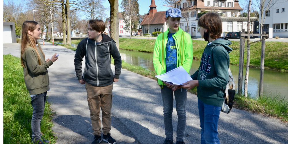 Beim Schulhaus Wyden kommt die Phantasie der Oberstufenschüler erneut ins Sprudeln: Bungee-Jumping vom Schuldach wäre toll. Man könnte auf dem Schulhaus Bäume pflanzen, den Schulplatz beim neuen Schlatt und die Dächer der Veloständer begrünen. Anouk bringt es auf den Punkt: «Natur ist sinnvoll, weil sie für jedes Alter Erholung und Spass bringt.» Weiter geht’s der Fuchsgasse entlang bis zur Böschach und zum Rheinauenpark, wo Rafael in Sachen Kletterbäume endlich fündig wird. Via «Habsburg» wandern die Vier zurück zum Oberstufenschulhaus. «Es war cool zu sehen, wo es in Widnau Platz gibt und wo nicht», bilanziert Nico und Anouk ergänzt: «Dass wir so viel Natur sahen, war toll.» Finn hätte gerne mehr davon, doch alle haben die zweistündige Exkursion genossen.