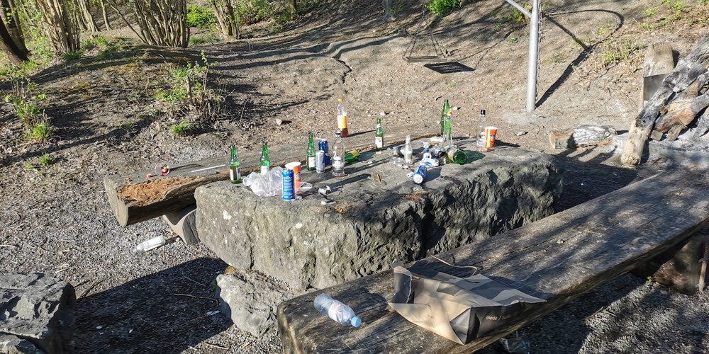 Leere Flaschen, Dosen und Becher liegen wild verstreut um die Feuerstelle beim Badeplatz Matz. Es sind die Spuren einer Partynacht, die Ernst Baumann Mitarbeiter des Unterhaltsdients am vergangenen Montagmorgen antrifft. «So sieht es hier häufig aus und wir dürfen es dann einsammeln und entsorgen», sagt Baumann, der bereits am Sonntagmorgen entlang des Alten Rheins auf Abfalltour war.