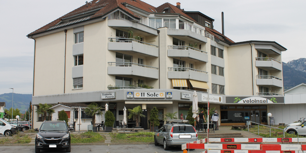 Das Gebäude «Sonnenliegenschaft» an der Hinteren Kirchstrasse 2 wird derzeit aufgewertet. Das Fahrradgeschäft Veloinsel hat seinen Standort in den Rhyinselhof verlegt. Damit ermöglicht das Velogeschäft der Drogerie zur Sonne eine Erweiterung der Ladenfläche und den Ausbau des Angebots zur Apotheke mit Drogerie. Ende September startet der Umbau der Geschäftsräume für Apotheke und Poststelle. Bereits im Juli wird im Rahmen der bereits laufenden Zentrumsgestaltung der Vorplatz und die Parkplätze an der Hinteren Kirchstrasse 2 neugestaltet und die Gartenwirtschaft der Pizzeria Il Sole erweitert.