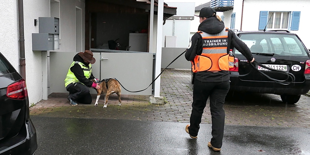 Die Lösung dieses Rätsels ist einfach. Es sind Hundefreunde, die sich mit ihren geliebten vierbeinigen Freunden dem «Man-Trailing» verschrieben haben. Also dem Suchen von Menschen mit Spürhunden. Denn die Wuffis und Bellos dieser Welt haben ja bekanntermassen ein den Menschen um ein vielfaches überlegenes Riechorgan. Und können so den Spuren eines Menschen noch lange folgen.