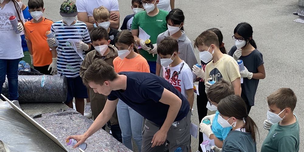 Im Schulhaus Haslach in Au durften die Schüler der vierten Klasse mit Spraydosen Graffitis zeichnen. Ein Wahnsinnsspass für alle Beteiligten.